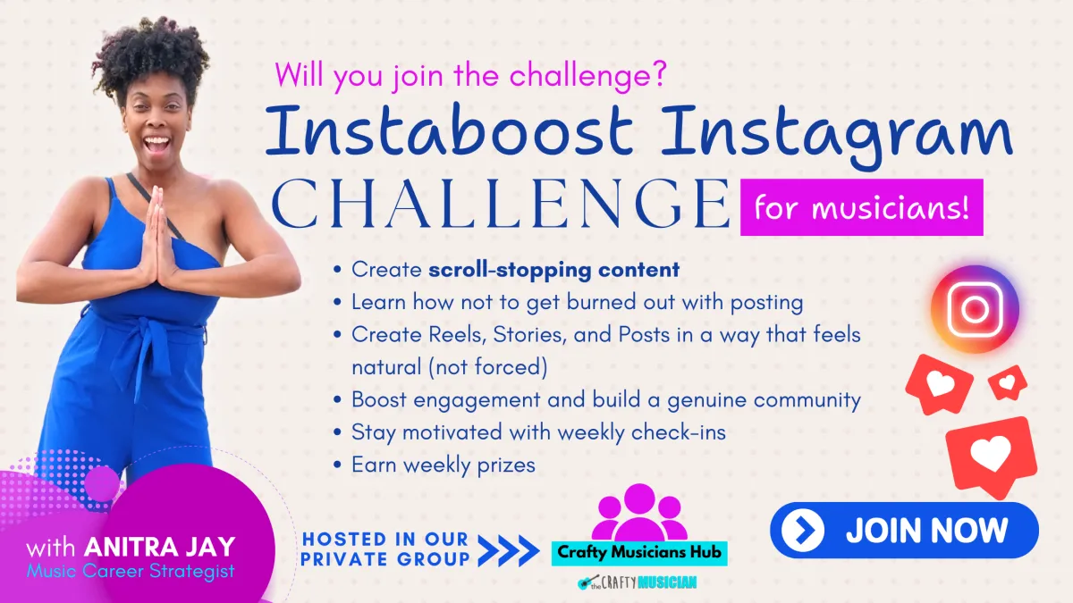 This 5 Day Challenge will help you hone in on your personal purpose as a musician, give you clarity about why you're doing what you're doing, help you articulate that to your audience, and attract the fans you want in the process. Learn how to find your artistic self in a way that attracts fan organically. Receive 5 Days worth of exercises, prompts, and practical steps to building a solid fan-base that resonates with your overall mission, values, and purpose as an artist.